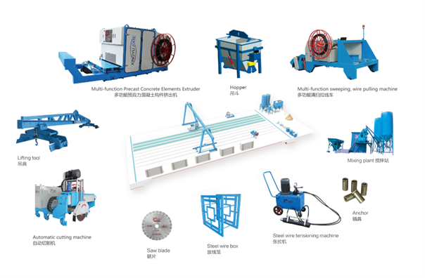GLY多功能預(yù)應(yīng)力混凝土構(gòu)件擠出機(jī),采用重力擠出原理,可換模具生產(chǎn)各種規(guī)格空心板混凝土預(yù)制構(gòu)件。本機(jī)更換模具只需10分鐘,生產(chǎn)出的構(gòu)件表面光滑,幾何尺寸準(zhǔn)確,密實(shí)度高,是構(gòu)件廠更新?lián)Q代的首選產(chǎn)品。